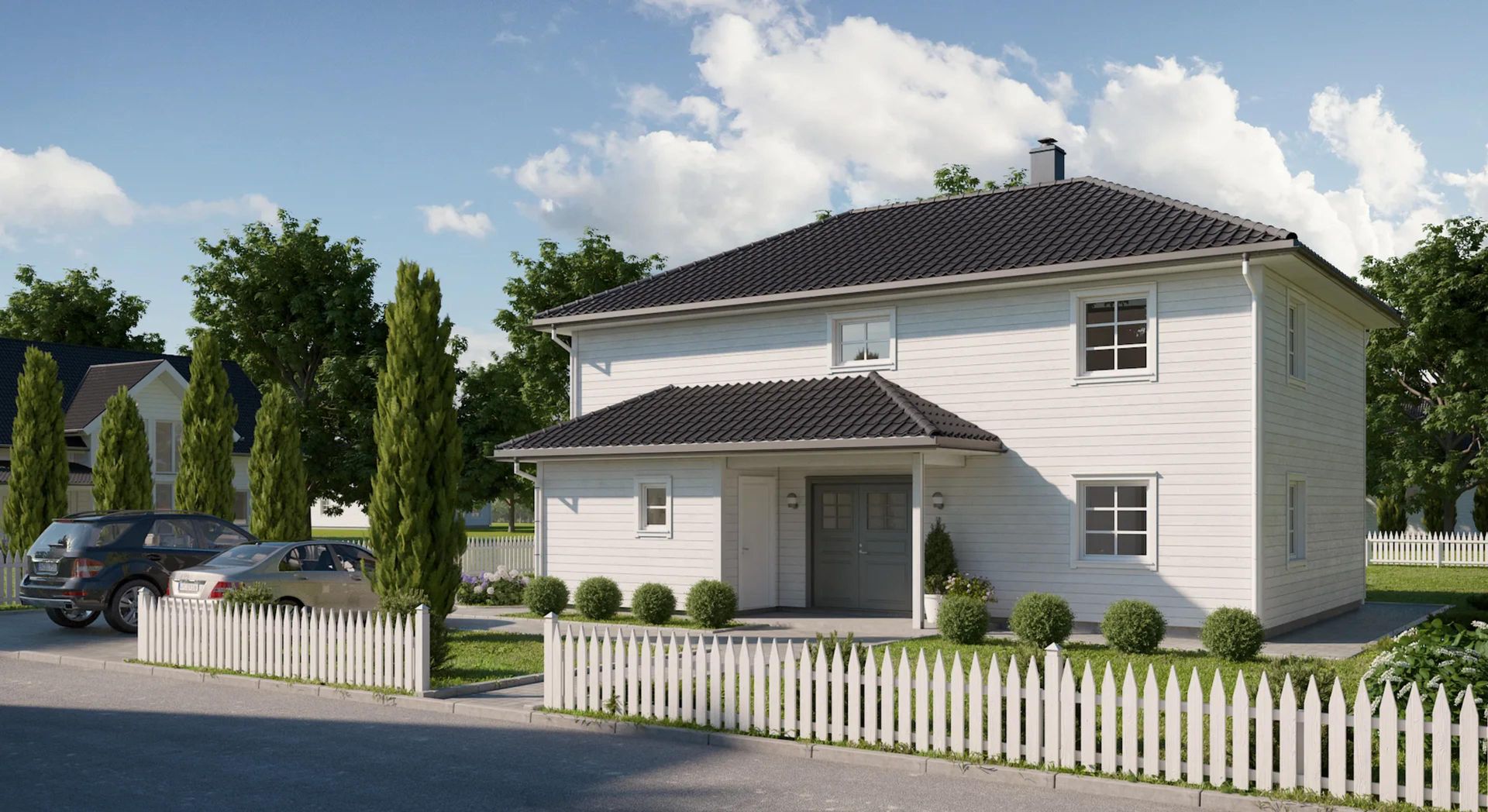Med Mesterhus Karita har arkitekten lagt vekt på å skape et harmonisk og tidløst fasadeuttrykk. Den midtsentrerte balkongen og et overbygd inngangsparti er med på å gi huset en herskapelig stil. Den romslige hallen med trapp opp til andreetasje og doble dører inn til stua, gir et flott inntrykk når du eller dine gjester kommer inn i huset. Det er også praktisk med god plass der hele familien kommer inn, med en romslig bod, bad og vaskerom lett tilgjengelig.